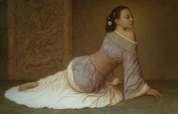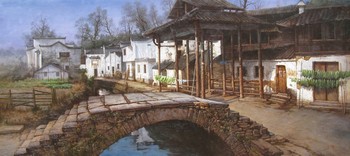 王輝寫實功力深厚,對古老建築所孕育的豐厚民情更是情有獨鍾。他善於以細膩、寫實的筆觸,透過古鎮斑駁的牆壁、青石路結鬱的縫隙,重現歲月淘洗下的古街風情與歷史古韻。袁熾彬的作品則以獨特的構圖著稱,在工整與對稱之中、呼喚出感官的力度與黑白的張力,他以無點透視法、隨興運筆,經營出自成一格的形式美學與視覺趣味,既寫實又寫意。同樣走寫實路線的秦正輝,作品以《孔雀公主》系列為代表,他的筆觸細膩,淡雅從容,畫中人物古典安適,兩相輝映,呼應出畫家與觀者心中的心靈美景與雋永情懷。