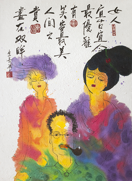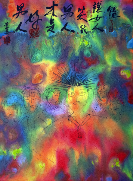 李善單 《人生精彩/妳在》彩墨.紙本 66x90cm 2014