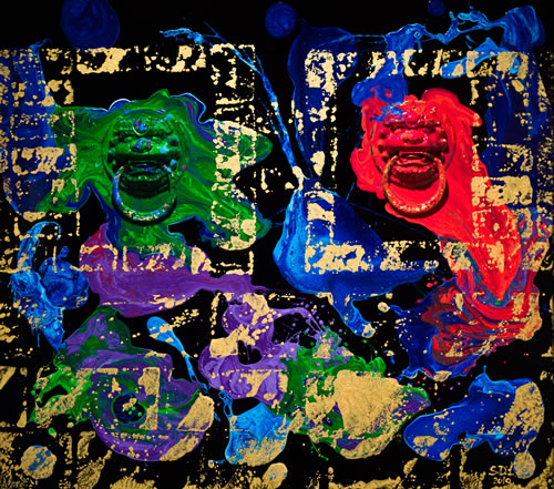 “将门系列”以中国百年古董-祥狮门环,融合现代独特漆料,在李教授的创意中,赋予新生与色彩,创造穿梭古今之美。至于平时唾手可得的网子,在艺术家慧眼之下,则成就出“Exit系列”令人赞叹的风情──看似缠绕的网,如同束缚与烦恼压力,换个角度思维,出口即在眼前乍现,而找到出口的一刹那,正是人生中最美的景致!
